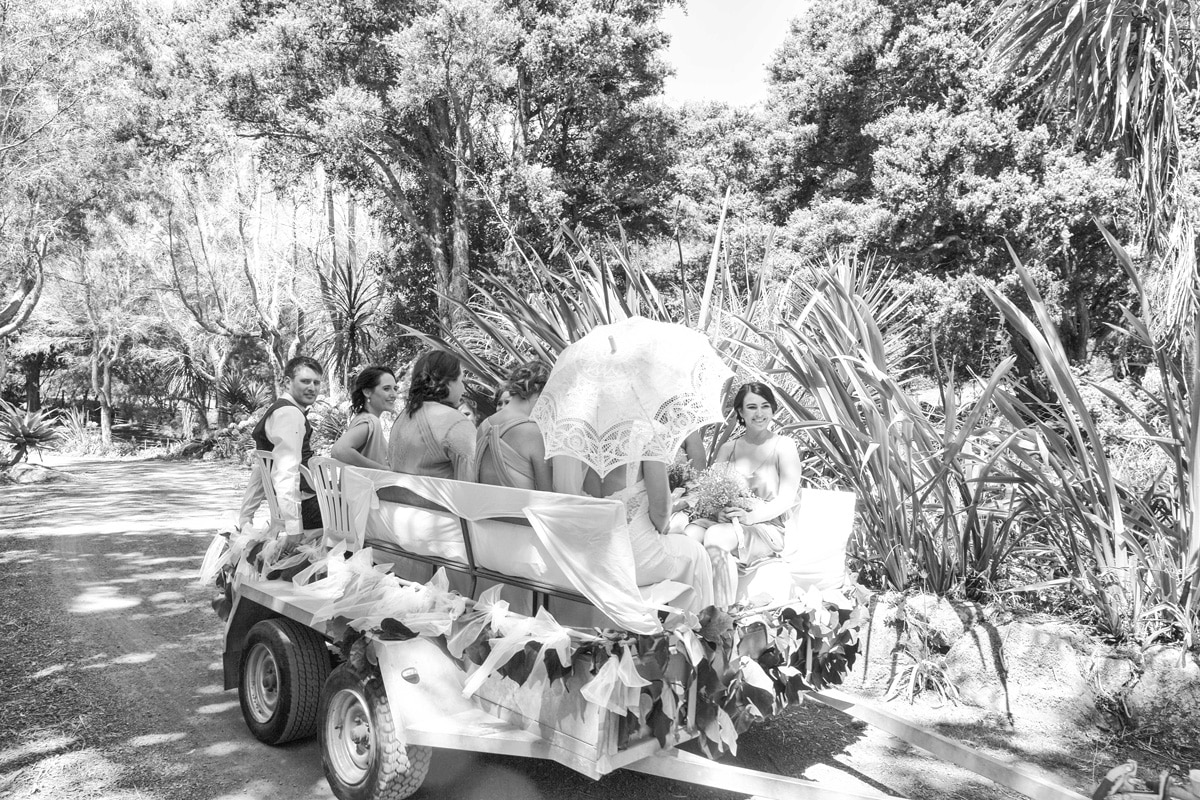 Once the exchange of vows has taken place, your wedding reception begins. We have unique spaces for your wedding reception, with ample room for a large marquee in case of poor or inclement weather – or to provide shade from the strong Northland sun! Your guests will be comfortably seated while eating, on our level, grassed clearings, with easy access to modern, clean facilities for both men and women. Your wedding party will also have easy, direct access to their vehicles, with a circular driveway providing immediate access to your reception location. This is particularly important for your elderly or more infirm wedding guests, making their experience of your special event as enjoyable as possible.